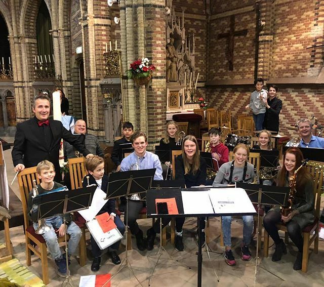 Repetitie van 30 jonge trompet-, bugel-, hoorn--, trombone- en tuba- blazers, en een slagwerker. Naar AllYouNeedIsLove-concert 14 feb 19.00u in Stiphout. Kom luisteren! ift.tt/39cY6En